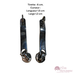 Lot de 2 Tirettes 6cm avec curseurs TAC -AD Argent compatibles valises rigides ou toiles Samsonite, Delsey et d'autres marques